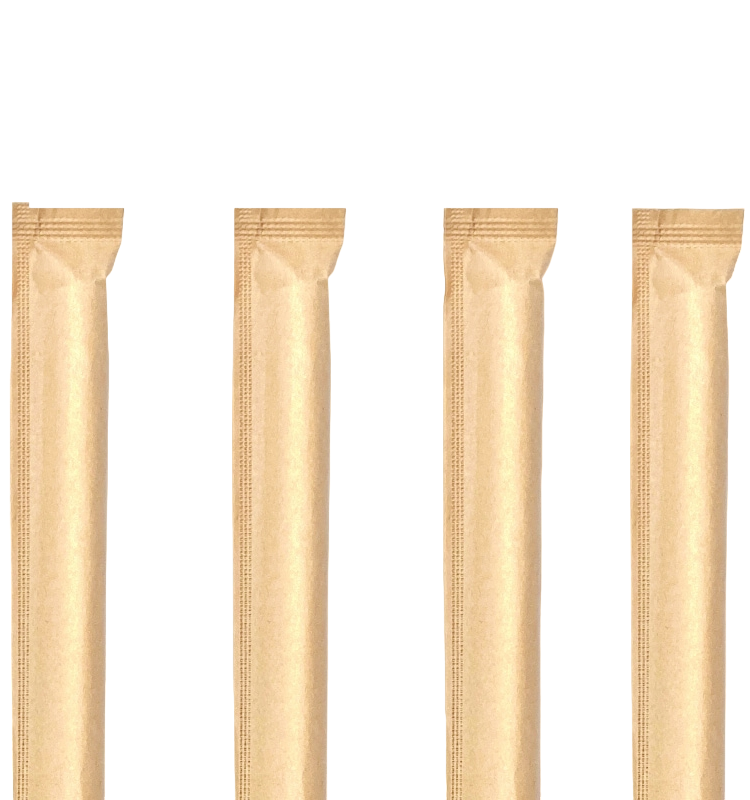 Een pak van 100 individuele in papier verpakte harde bamboe rietjes. Veel sterker dan karton.