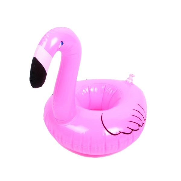 Twee opblaasbare flamingo bekerhouders voor bijvoorbeeld in het zwembad.
