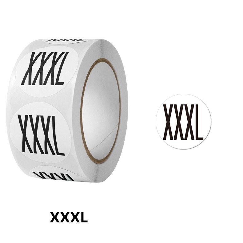 500 XXXL Maatsticker op rol 2.5cm Diameter Wit Sticker Kledingmaat