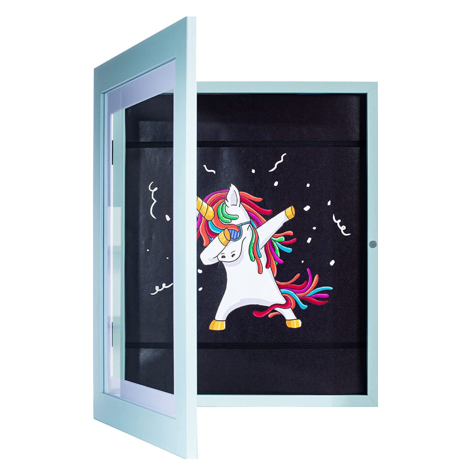 De lijst is geschikt voor A4-formaat en is perfect voor kinderkamer, woonkamer of klaslokaal. Een leuke en praktische manier om creativiteit zichtbaar te maken en herinneringen te bewaren.