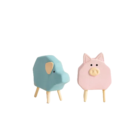 2 Beeldjes van biggetjes varkens, roze en blauw.