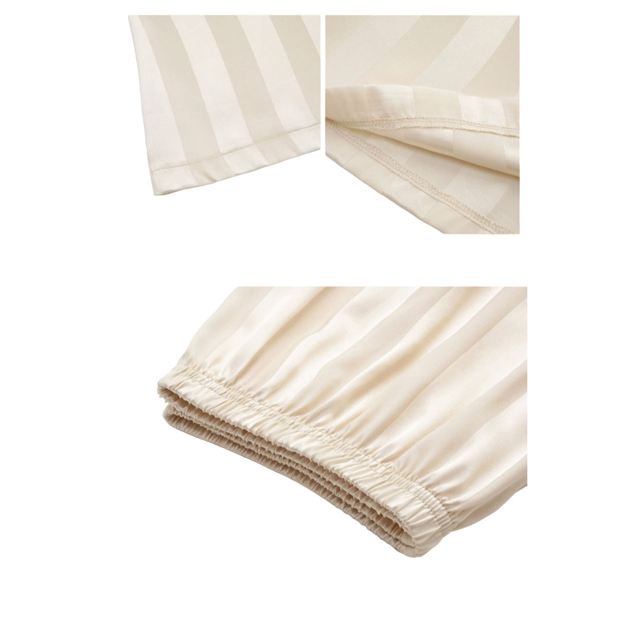 Een prachtige crèmekleurige pyjama set. Zijden dames pyjama. Geschikt voor vrouwen tussen de 160-172cm lang.