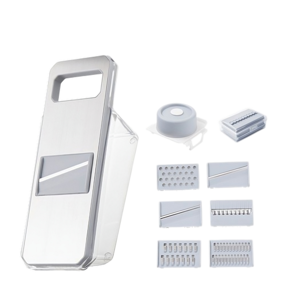 Deze groentesnijder met 6 snijders is een handig en veelzijdig hulpmiddel voor in de keuken. Het is ontworpen om snel en gemakkelijk groenten te snijden, hakken en raspen, zodat u tijd kunt besparen bij het bereiden van uw maaltijden.