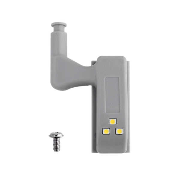 Een kastlampje welke bevestigd kan worden op het scharnier van uw kastdeurtje en automatisch aan gaat wanneer u het deurtje opent. Dit lampje werkt op een 23A 12v batterij.