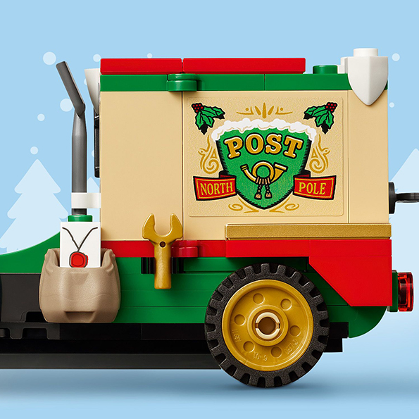 Kinderen kunnen de vrolijke speelgoedtruck van de Kerstman stap voor stap in elkaar zetten en hem vervolgens gebruiken om cadeautjes rond te brengen. De truck kan open, zodat de verborgen kerstcadeaus zichtbaar worden. Op het dak kan een kleine LEGO kerstboom worden geplaatst voor een extra feestelijke uitstraling.