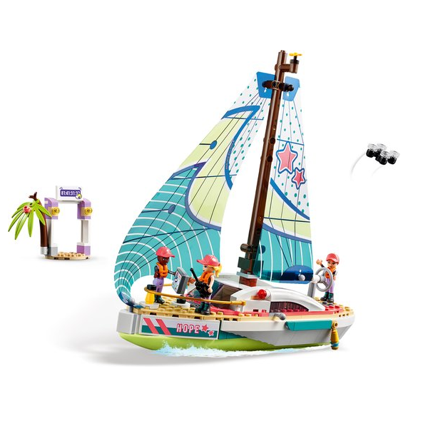 De speelset bevat een gedetailleerde zeilboot met realistische functies, zoals een flexibel zeil en een draaibaar roer. Met de minifiguurtjes van Stephanie, Maxine en Elijah kunnen kinderen de zeilen hijsen, koers bepalen en hun eigen zeeverhalen bedenken.