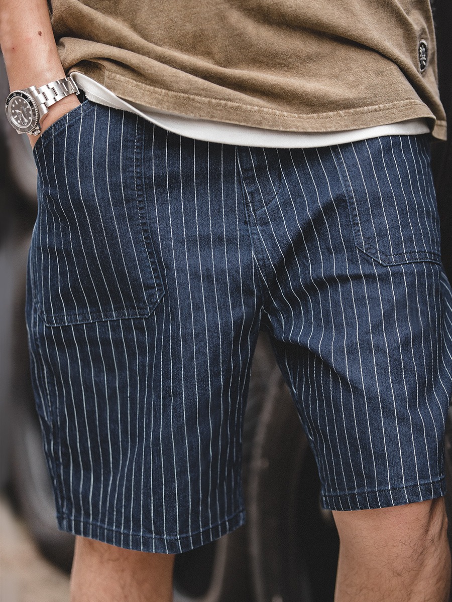 Maat L/XL - Korte Spijkerbroek Gestreepte Retro Navy Broek