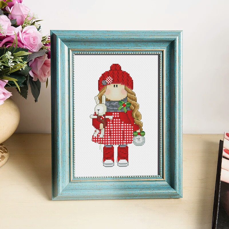 Meisje Dochter Borduurset 14CT op Wit Borduurstof KT4008