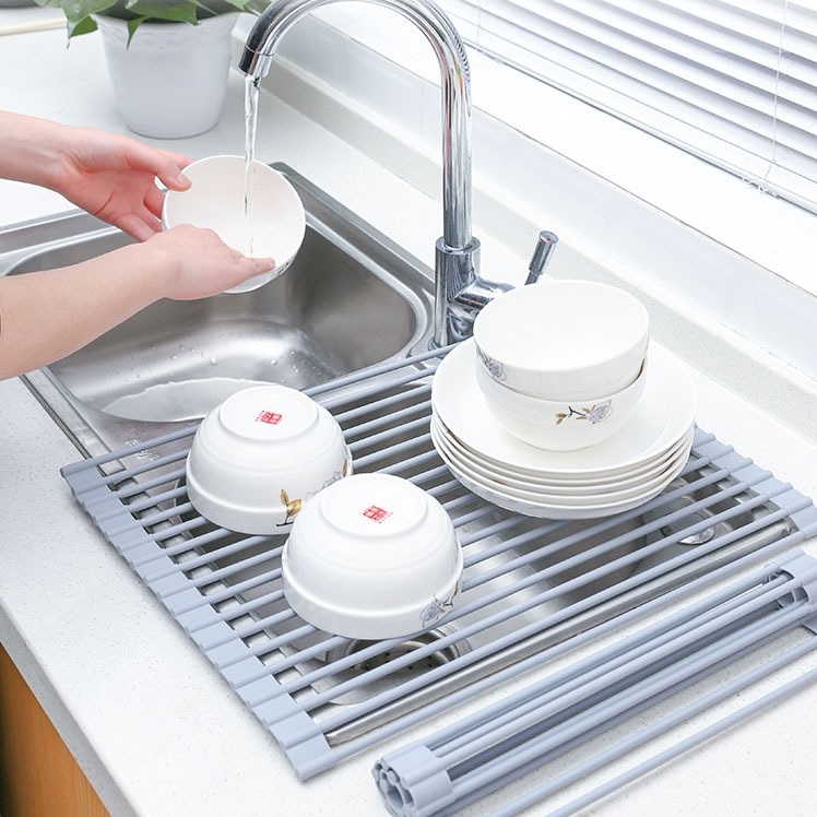 Plaats dit opvouwbare afdruiprek rooster over uw gootsteen en laat vaat hierop drogen.