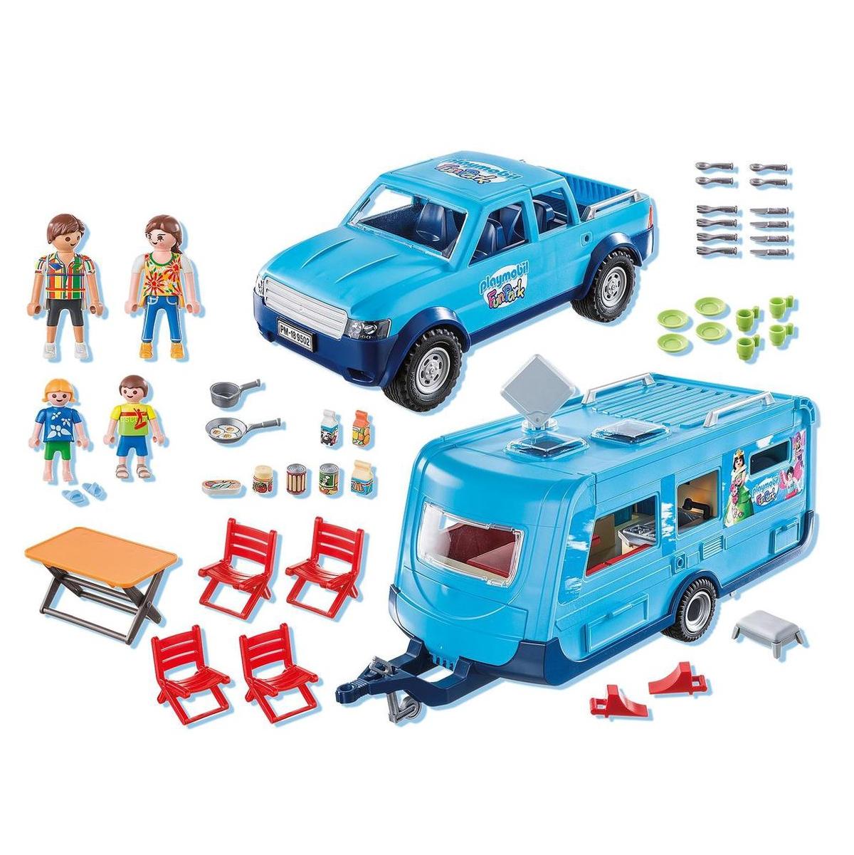 Ga op avontuur met de PLAYMOBIL FunPark Pickup met Caravan! Deze uitgebreide set bevat alles wat kinderen nodig hebben voor fantasierijke kampeerverhalen. Laad de spullen in, koppel de caravan aan de pickup en rijd naar de perfecte kampeerplek. Met de vele accessoires kunnen kinderen eindeloos spelen en hun eigen outdoor-avonturen bedenken.