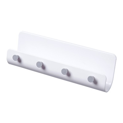 Een wit kunststof sleutelrekje en brievenhouder in 1. Dit rekje heeft 4 haakjes en kan aan de muur geplakt worden met tape of lijm (niet bijgeleverd).