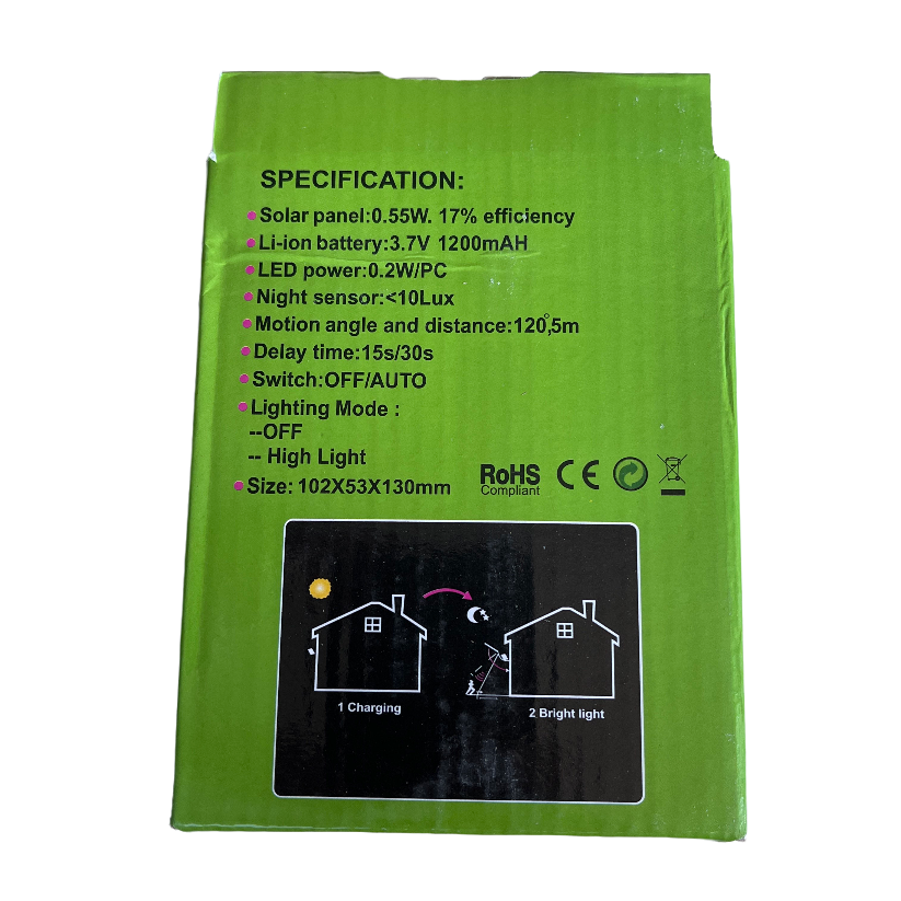 Een solar tuinlamp met 20 ledjes welke 's nachts aan gaat op beweging.