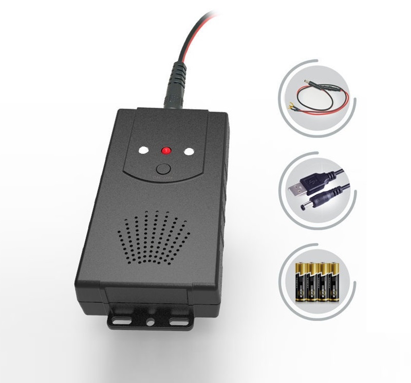 Een compacte steenmarter verjager welke of op 4 AA batterijen, of op usb, of op 12 volt autoaccu stroom kan werken. Deze verjager gebruikt minder dan 3 watt en is effectief in de omliggende 20m2. Elke 30 seconde maakt dit apparaat geluid van 50Hz en gaat daarna alle tonen af tussen de 12KHz en 24KHz. Voor mensen niet tot vrijwel niet hoorbaar. Dit apparaat is tevens effectief in het verjagen van katten, muizen, martens, wasberen en meer.