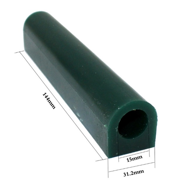 Een 14,4cm lange vijlwas staaf in de vorm van een zegelring. Wanneer de staaf met de vlakke kant naar benede licht is de onderkant 11mm dik en de bovenkant 7mm dik.