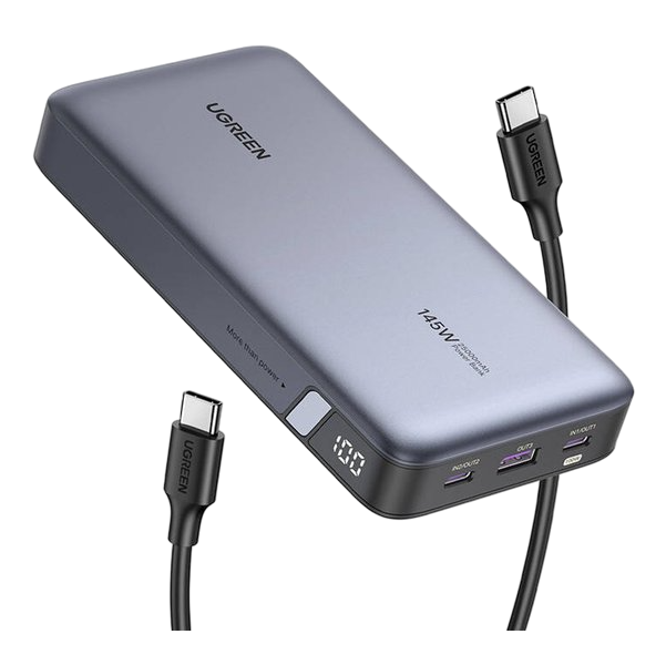 Kortom: dit is niet zomaar een powerbank, maar een mobiele energiecentrale die jouw apparaten in recordtijd weer tot leven brengt. Kies voor betrouwbaarheid, snelheid en kracht. Kies voor de UGREEN Powerbank 145W.