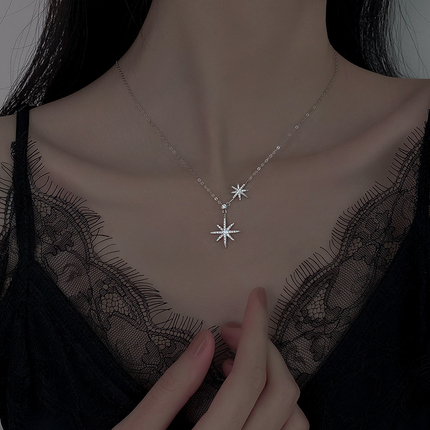 Zilveren Ketting met 2 Sterren met diamant 925